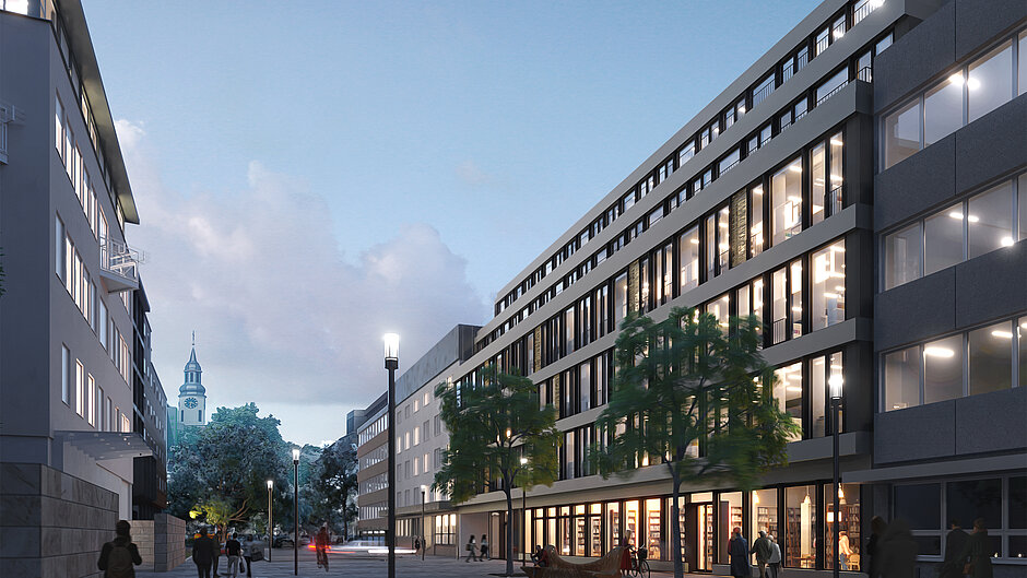 2024 werden zukunftsfähige Büro-, Kanzlei- und Praxiswelten mit begrünten Balkon- und Terrassenflächen bezugsfertig. Die Vermietung der attraktiven Flächen hat begonnen - es können das Gesamtgebäude oder Teilflächen ab 340 qm langfristig angemietet werden.
